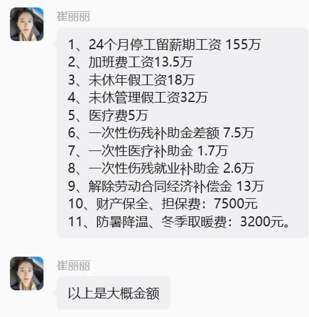 “我维权所有诉请金额全是基于我的工资基础来进行的,法律有明确的法条支撑,就是要以员工的实际工资来诉请。我不认为这是高额,它跟我的工资是匹配的”,崔丽丽说。案件发生前,崔丽丽的年薪为120多万元,其中包括固定工资60万元、销售提成60余万元。